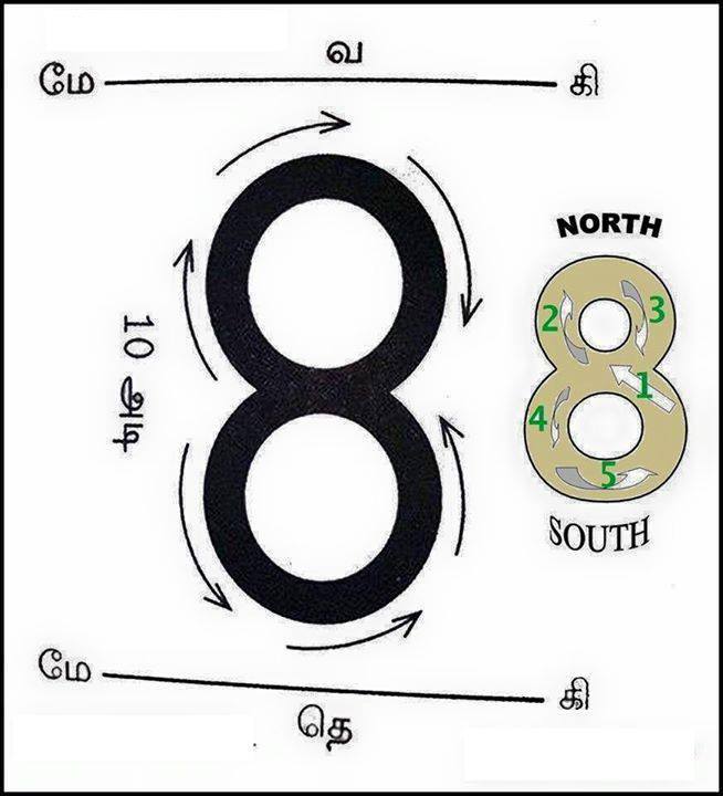 - Start at the position marked as “1″ in the below picture and follow the “8″ pattern
