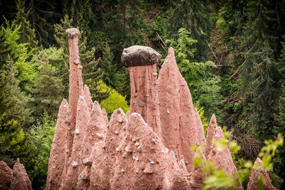 At many places across South Tyrol, in northern Italy, one can see a peculiar geological formation called “earth pyramids”. They consist of tall cone-shaped pillars made of clay, with a boulder resting on top.