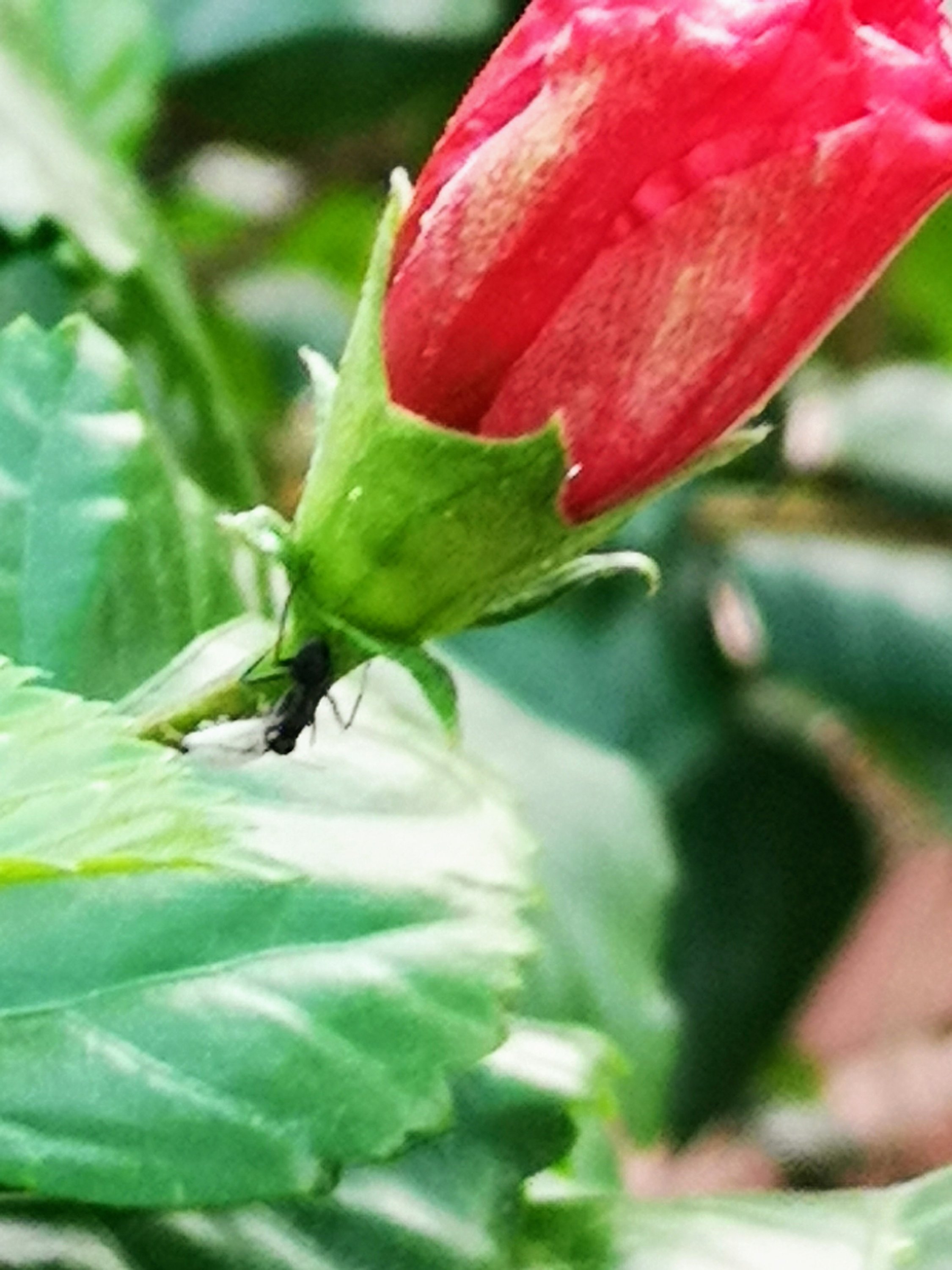Black ant tasting the stem of Royal Hibiscus..2